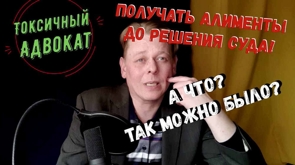 Столкнулся с тем, что, оказывается, многие граждане, особенно гражданки, не знают, что можно начать получать алименты до вынесения судом Решения! Оказалось, что некоторые из юристов тоже этого не знаю! Из видео Вы узнаете, что необходимо сделать и как это сделать, чтобы начать получать алименты на ребенка до вынесения судом Решения о взыскании алиментов! Подписывайтесь на канал! Буду благодарен всем за "лайк" и комментарий! Делитесь этим видео с друзьями! Я на Яндекс Дзен - https://zen.yandex.ru/id/5ea5a0e9c9c7e01bd613d1d8 - здесь можно почитать статьи не только на юридические темы, но и моей жизни.