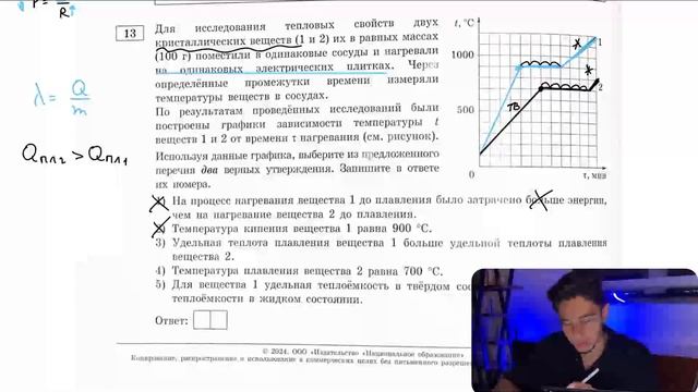 Для исследования тепловых свойств двух кристаллических веществ (1 и 2) их в равных массах - №28904