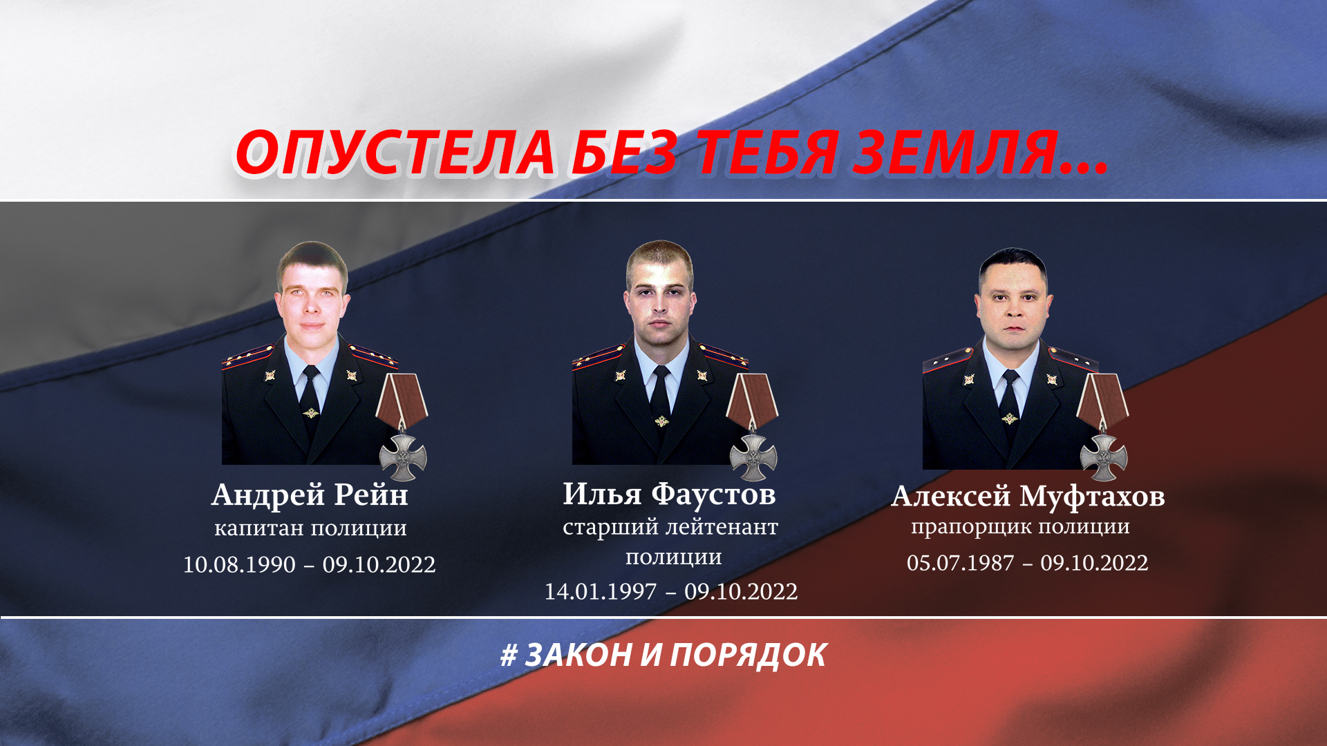 Андрей Рейн, Илья Фаустов, Алексей Муфтахов. Трое красноярских полицейских год назад погибли в служебной командировке на территории проведения специальной военной операции. Наш долг рассказать о том, какими были наши парни, как беззаветно были преданы Родине и службе, как дорожили своими друзьями и близкими. Смотрите об этом в новом выпуске программы «Закон и порядок».