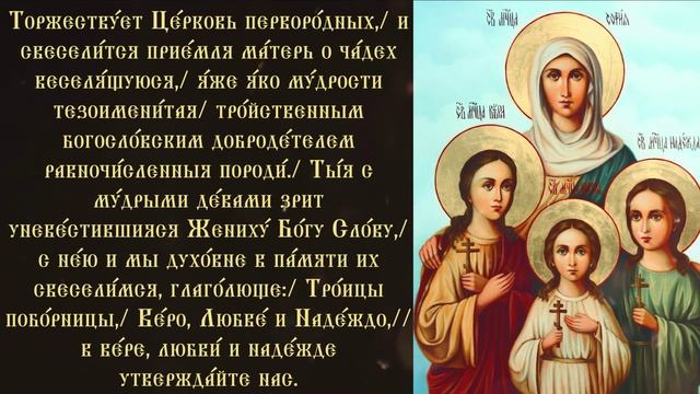 Тропарь и кондак Вере, Надежде, Любови и матери их Софии