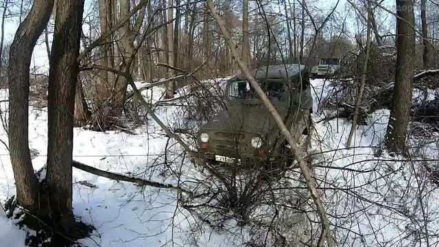 Зимние Бездорожье на внедорожниках Chevrolet Niva, УАЗы не смогли перескочить через бревно.