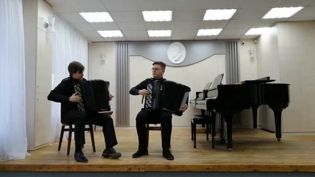 Смотрин Антон и Смоленцев Евгений. 1. РНП в обр. И. Сперанского "Тонкая рябина" 2. Л. Бёльман. Молитва и Токката из Готической сюиты.