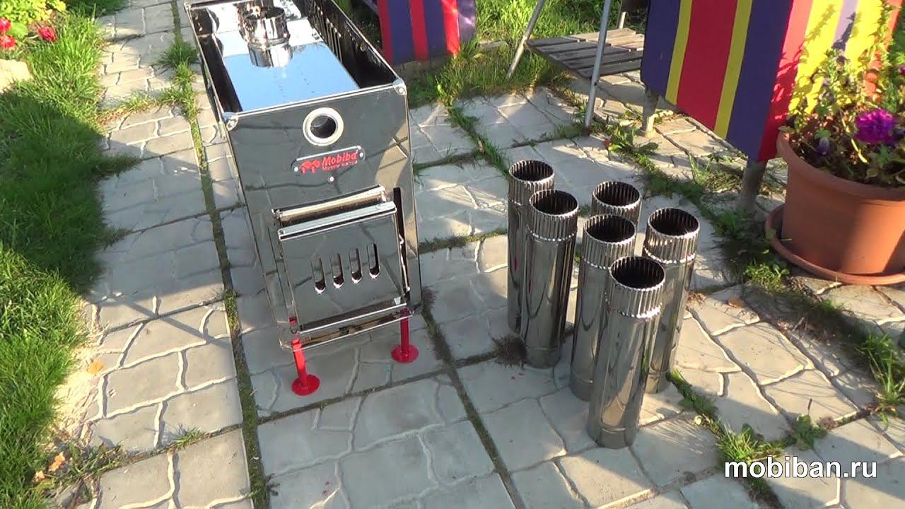 Краткий видео обзор новой печи Медиана-4 от Мобиба. http://mobiban.ru/pech'_mediana.php Основное отличие новой модификации печи Медиана четвёртого поколения от предыдущих версий - это наличие экрана снизу, который защищает поверхность, на которой установлена печь, от лучистого тепла. Благодаря экрану снизу так же повышается КПД (коэффициент полезного действия) печи Медиана-4, что неизменно сказывается на банном эффекте при парении в мобильной бане Мобиба. Медиана-4 - это банная печь, которая имеет колосник. Благодаря колоснику дрова горят быстрее, они горят как бы снизу, в результате выделяется больше тепла в единицу времени, то есть это более мощная печь по сравнению с печами, поддерживающими подовое горение (Согра-2, Дюна). Печь Медиана-4 имеет зольник для регулировки подачи воздуха. Дымоход обращён от пользователя. Патрубок дымохода состоит из двух слоёв металла и проварен вкруговую. Сам металл - это легированная сталь AISI 430, устойчивая к образованию окалины (печь не прогорает и имеет долгий срок службы). Варочная поверхность защищена от пользователя кожухом-конвектором с 4 сторон (спереди, сзади и сбоку). Балка, приваренная снизу к варочной поверхности печи, обеспечивает повышенную жёсткость, то есть устойчивость к деформации. А так же балка турбулизует газопламенный поток, создавая микровихри под варочной поверхностью. 6 сегментов дымохода в комплекте обеспечивают стабильную тягу. Надёжное крепление 4-х ножек идущих в комплекте обеспечивают хорошую устойчивость на земле. Специфическая форма рукоятки дверцы топки обеспечивает её надёжное запирание. Сама дверца так же защищает пользователя дополнительным экраном от лучистого тепла. Нижний экран защищает поверхность, на которой установлена печь Медиана-4, от лучистого тепла, распространяющегося вниз.
