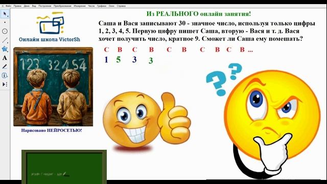 ВНИМАНИЕ - АНОНС! Из РЕАЛЬНОГО онлайн занятия! Когда я "что-то понял", то предложил ученику записывать цифры за САШУ! Видимо нашел стратегию за ВАСЮ! Подумайте! ПРОДОЛЖЕНИЕ СЛЕДУЕТ!!! 😊👍😎📐