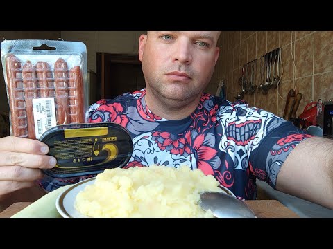 МУКБАНГ ПЮРЕШКА и скумбрия в томате/ОБЖОР рыбные консервы