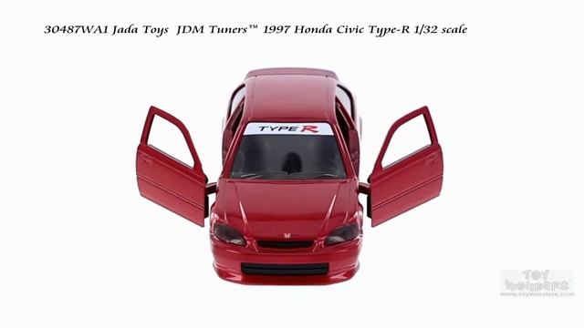 https://bit.ly/2HtLqOf 30487WA1 Jada Toys - Metals Die Cast | JDM Tuners™ 1997 Honda Civic Type-R. 1:32 scale diecast collectible model car. This Honda Civic is a a 5.25"Lx 2.25"Wx 1.5"H diecast metal cars with opening doors. This car is manufactured by Jada Toys. It comes individually packed in a window box. Window Box is 6"L x 3"W x 3"H. Item 30487WA1 is in assorted colors. 12 pcs per inner.