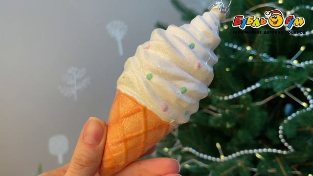 330997 Украшение елочное Мороженное в Рожке с блестящей посыпкой разноцветный 13см