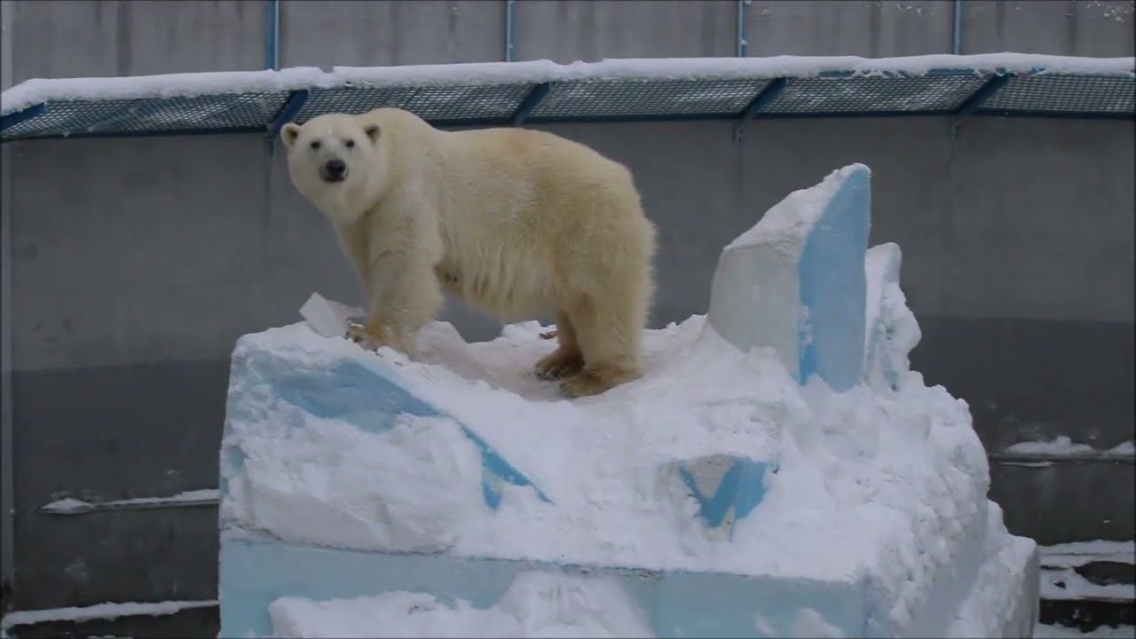 Герда родилась в Москве 20 ноября 2007 года. Её мама Симона, папа Врангель. В Новосибирск переехала 05.08.2008. В 2013 году у Герды и Кая родилась Шилка. В 2015 году она переехала в Японию. В 2015 году родился Ростик. 6 декабря 2018 года он переехал в Китай. В 2018 году родились Норди и Шайна. Сейчас они находятся в нашем зоопарке в закрытой от посетителей хозяйственной зоне. В другие зоопарки их не могут отправить. Сначала была пандемия, сейчас границы закрыты и санкции. Белые медведи Норди и Шайна содержатся в МУП «Новосибирский зоопарк имени Р. А. Шило» с рождения и по настоящее время. Данная пара молодых медведей находится вне экспозиции зоопарка, поэтому посетители не могут их видеть. Передача молодых медведей в другой зоопарк пока не планируется, — ответили на запрос редакции в пресс-центре мэрии Новосибирска. У них есть бассейн, игрушки. Их так же кормят как и раньше. Голодные не бывают. Шайна размером с маму, Норди с папу. Шайна командует Норди. Одиночные животные. Как правило, миролюбивы по отношению друг к другу, но между самцами в брачный период случаются стычки. Взрослые самцы могут нападать на медвежат. Гон с марта по июнь. Продолжительность жизни — максимум 25—30 лет; в неволе рекорд долгожительства — 42 года. Вес очень крупных самцов в некоторых частях ареала 700 и даже 800 кг: есть данные о зверях весом до 1000 кг. Обычно вес меньше. Самки всегда не только меньше, но и значительно легче самцов. Так, самцы в восточной Гренландии в состоянии нормальной упитанности весят 400—450 кг, хорошо упитанные — до 500 кг, самки, даже очень сытые, здесь же редко весят больше 350—380 кг, т. е. их вес составляет около 75% веса самцов. Длина тела на 3-й день после рождения 28—32 см, средний вес — около 755 г (650—840 г). На 26-й день длина тела увеличивается незначительно — до 35—38 см, а вес возрастает до 1125—1275 г. В возрасте 60 дней самцы весят около 7 кг, самки — около 6 кг при длине тела у первых 58—60 см, у вторых 54—58 см. В возрасте 4 месяца медвежата достигают веса 22—23 кг, в 6-месячном возрасте при длине около 110 см — 40—43 кг, в 8-месячном — 58—62 кг. Длина тела в возрасте с 6 до 9 месяцев нарастает по 6—7 см в месяц. Во время зимнего сна рост почти прекращается. В зоопарке медведей кормят утром морской рыбой, хлеб с рыбьим жиром внутри, морковь, яблоки, морская капуста, яйцо дают сырое. Медвежат подкармливают молоком из соски. На ужин мясо (говядина, конина, куры или индейка). Летом и осенью арбузы, дыни, ранетки, кабачки, тыквы, огурцы. Когда показательное кормление летом бросают живую рыбу. Медвежата с медведицей находятся до 2-х лет. 16 декабря 2022 года Герда родила 2-х медвежат. И это две девочки! Имена дали 25 июня. Медвежат зовут Стрелка и Белка. Обзор вольеров белых медведей https://www.youtube.com/watch?v=mAt_b7JD0B4&list=PLGvf0V-rAHxkpGKJaWIZIUxRKgKiqV3xZ&index=17&t=0s