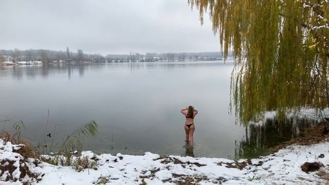 Купальщица в ноябрьском водоеме.