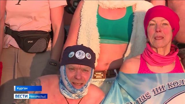 Закал-пробег - так назвали курганские любители моржевания свой новогодний пробег. Тридцать закалённых горожан после пробега искупали Деда Мороза в проруби.