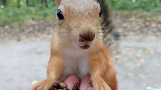 Кормлю очередную белку