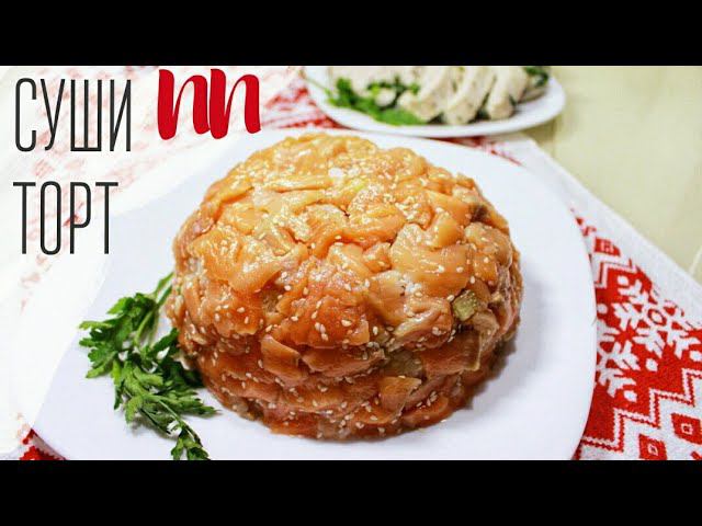 ПП ЗАКУСКИ НА НОВЫЙ ГОД / Суши торт / Куриный рулет с зеленью