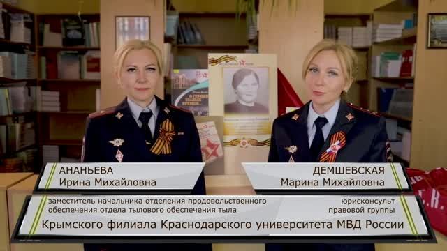 К проекту #ЯпомнюЯгоржусьСлужуРоссии присоединились сотрудники Крымского филиала университета капитан полиции Марина Демшевская и майор полиции Ирина Ананьева. Они поделились историей о своих бабушке и дедушке, участниках Великой Отечественной войны.