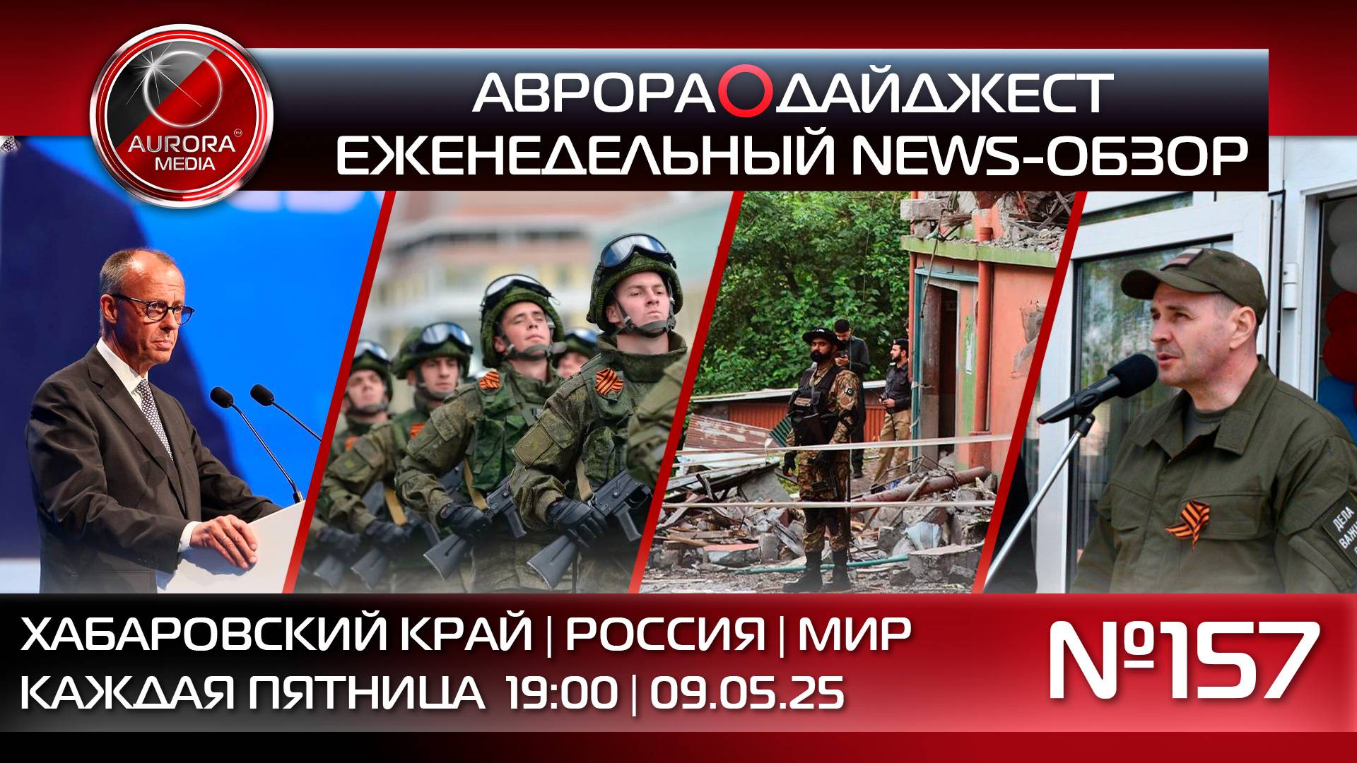 АВРОРА⭕️МЕДИА ЕЖЕНЕДЕЛЬНЫЙ ВИДЕО NEWS-РАЗБОР НЕДЕЛЯ | 02.05.2025 - 09.05.2025 АВРОРА⭕️ДАЙДЖЕСТ №157 Содержание: 0:00 Начало 0:30 В этом выпуске НОВОСТИ ХАБАРОВСКОГО КРАЯ 01:23 Глава региона оценил итоги и ход восстановительных работ в подшефном городе Дебальцево 02:24 Дмитрий Демешин встретился с участниками отбора в региональную программу "Герои Vостока" 03:20 В краевом доме ветеранов прошло торжественное собрание, посвященное 80-й годовщине Победы в Великой Отечественной войне 04:21 Меры социальной поддержки участников СВО и членов их семей совершенствуют в Хабаровском крае 05:51 Спортсмены региона завоевали медали чемпионата и первенства России по тхэквондо ГТФ НОВОСТИ РОССИИ 06:34 В Дагестане совершено вооруженное нападение на сотрудников правоохранительных органов 07:35 ВСУ атаковали беспилотниками Москву и еще несколько российских регионов НОВОСТИ МИРА 08:28 В ночь на 7 мая Индия начала военную операцию «Синдур» 09:27 Фридриха Мерца со второй попытки избрали канцлером Германии || Телеграмм-экосистема А⭕️М: | АВРОРА МЕДИА @aurora_media https://t.me/aurora_media | АВРОРА НОВОСТИ @news_aurora https://t.me/news_aurora | АВРОРА ХАБАРОВСК @khv_aurora https://t.me/khv_aurora | АВРОРА ЛАЙФ @life_aurora https://t.me/life_aurora | АВРОРА СПОРТ @sport_aurora https://t.me/sport_aurora | АВРОРА ГЕРЛС @girl_aurora https://t.me/girl_aurora | АВРОРА ХАЙТЕК @ht_aurora https://t.me/ht_aurora | АВРОРА ПЕРСОНЫ @people_aurora https://t.me/people_aurora | АВРОРА ИНСАЙД @media_aurora https://t.me/media_aurora | АВРОРА КРИМИНАЛ @crime_aurora https://t.me/crime_aurora | АВРОРА МОЛОДОСТЬ @aurora_young https://t.me/aurora_young || Aurora_Media: | Российское Информационное Агентство | +7(4212)900-900 media@auroragroup.info