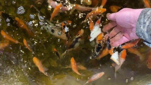 Карпы Кои едят с рук.Включили свет....Ну и так.