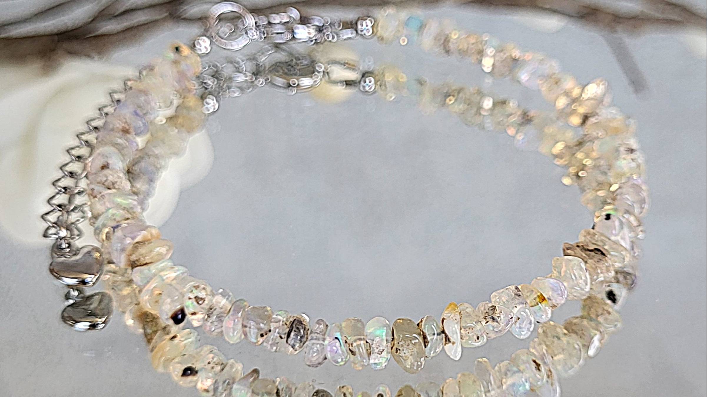 Браслет украшения из натуральных камней. Браслет из опала (Мексика): опал (Мексика) галтовка мелкая, длина 18-24 см. (на запястье от 15 см.)