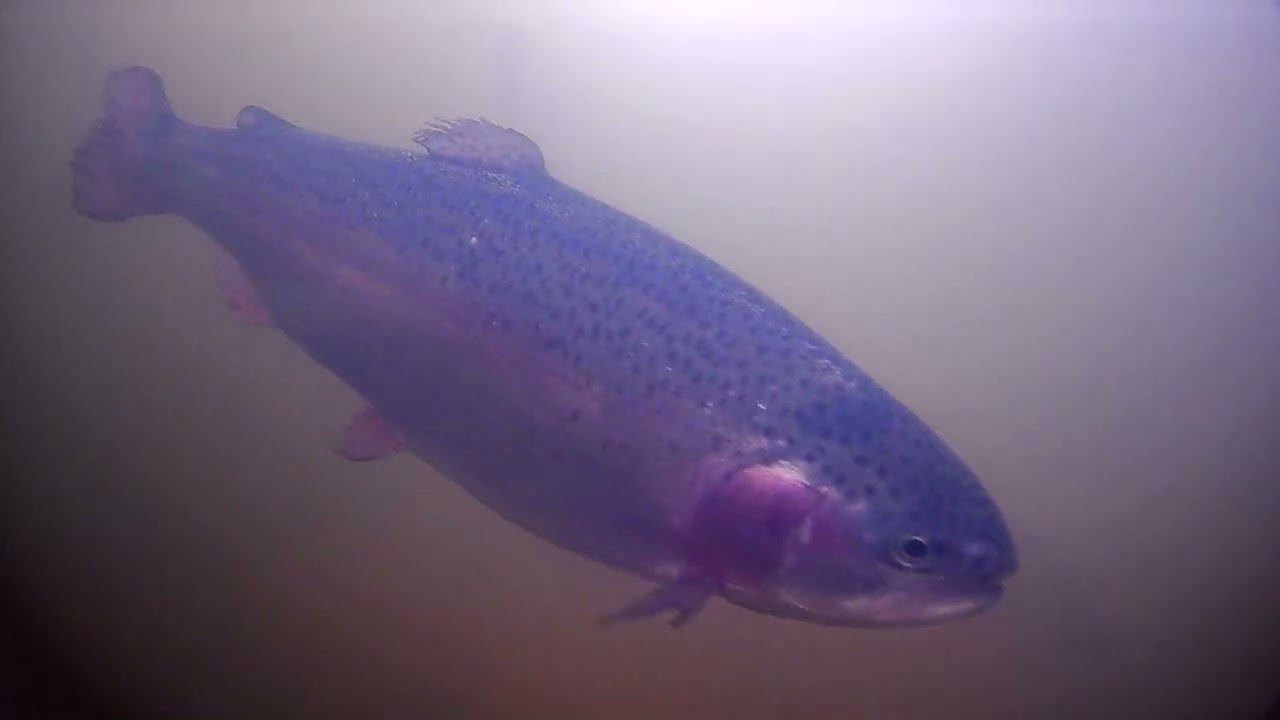 Опустил подводную камеру, и увидел косяк форели, подводная съёмка зимой со льда.