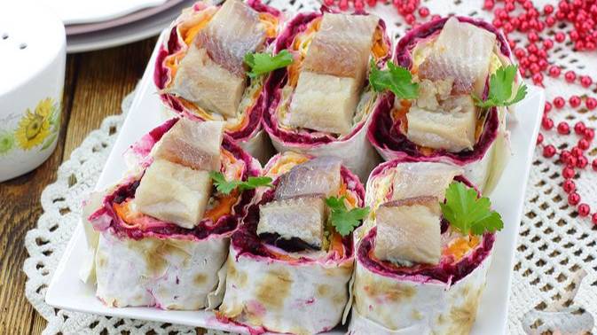 Если вам нравится салат "Селёдка под шубой", тогда этот рецепт рулетиков из лаваша придётся вам по вкусу. Такая закуска готовится ничуть не сложнее: просто сворачиваем рулет из лаваша со свёклой, морковью и отварными яйцами, нарезаем его порционными кусочками и дополняем солёной сельдью и свежей зеленью. #ЛавашСНачинкой #СеледкаПодШубой #ЗакускиИзЛаваша