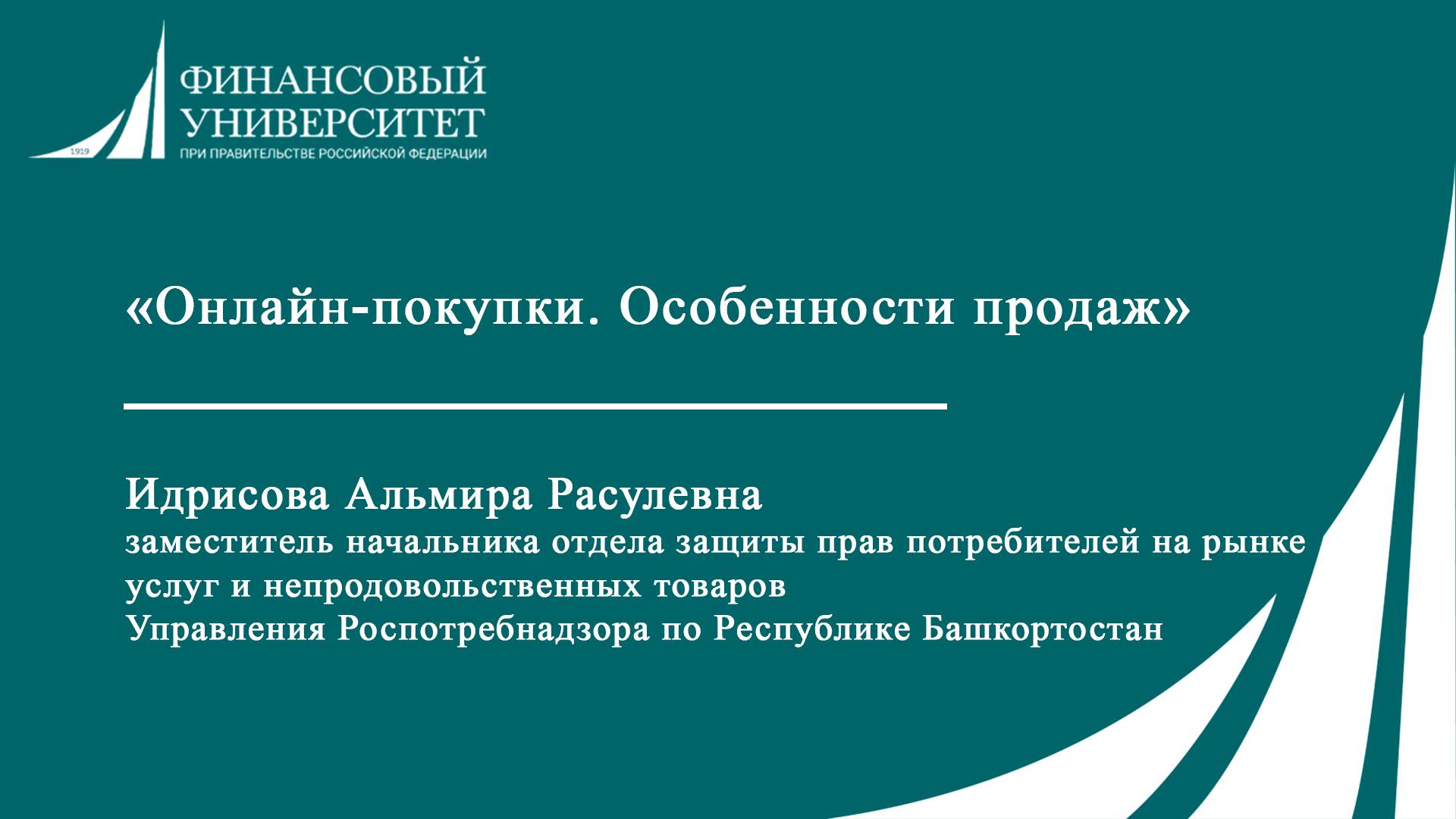 Спикер - Идрисова Альмира Расулевна, заместитель начальника отдела защиты прав потребителей на рынке услуг и непродовольственных товаров Управления Роспотребнадзора по Республике Башкортостан