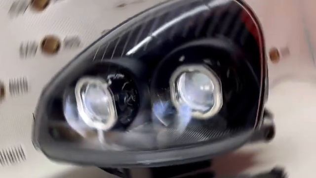 Фара правая / левая, Лада Приора, Би линзы 2 шт. в каждой фаре+ДХО квадратный, чёрный фон