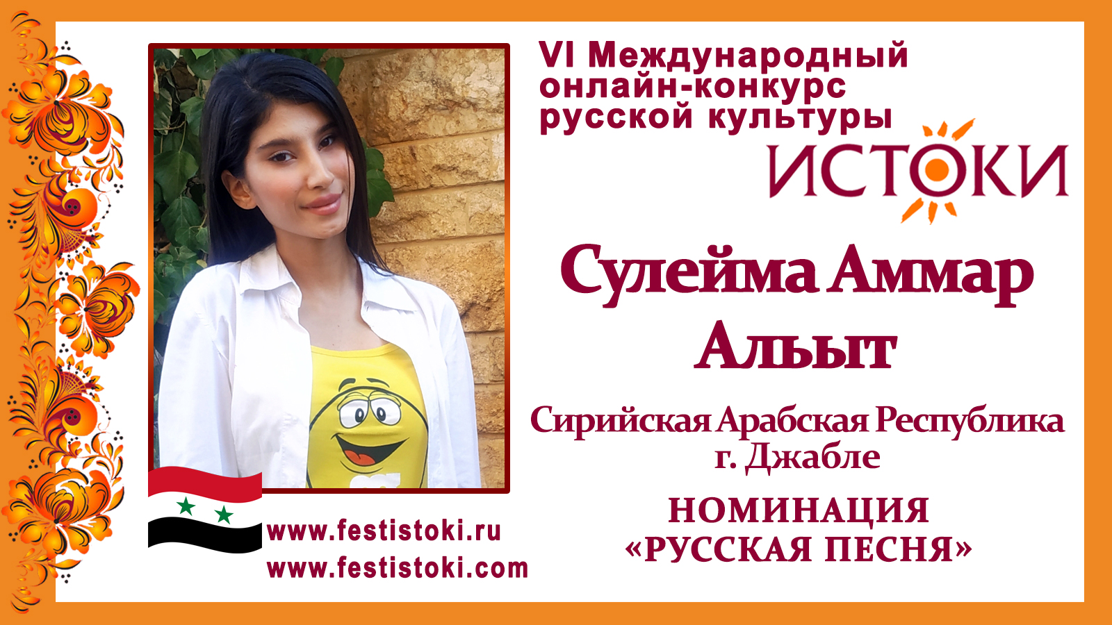 Участник VI Международного онлайн-конкурса русской культуры "Истоки". Номинация "Русская песня". Песня "Лети, перышко". Авторы Михаил Шевчук,Сергей Сысоев. Сайт: www.festistoki.ru / www.festistoki.com E-mail: festistoki@mail.ru