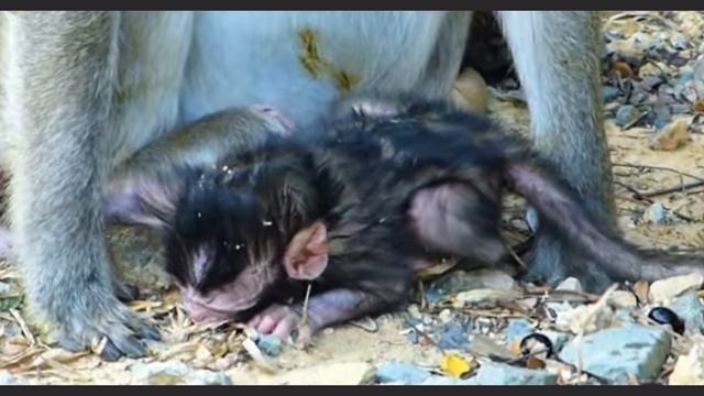 Новорожденный младенец макаки плакал....