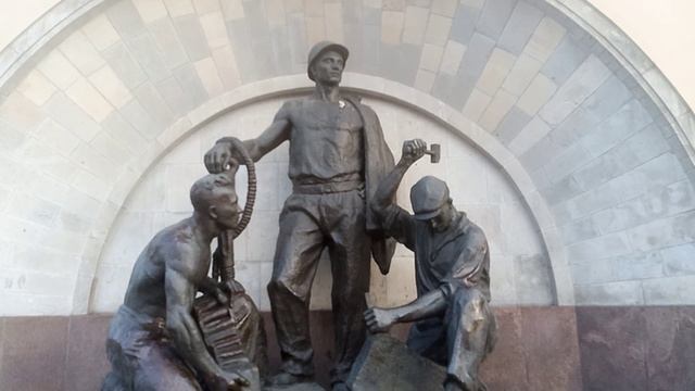 У входа в метро на станцию «Электрозаводская» расположена скульптурная группа под говорящим названием «Метростроевцы». Установленная у наземного вестибюля композиция — работа скульптора Г. И Мотовилова, который создавал памятник, сотрудничая с архитекторами В. Г. Гельфрейх и И. Е Рожиным. Изваяние представляет собой три каменные фигуры тружеников. Двое из них склонились над работой, присев на колени, один изображен в полный рост. В ногах у строителей расположены рабочие инструменты — их каждодневные помощники в титанических трудах. Кажется, что стоящий парень на минуту распрямил спину, чтобы поведать товарищам будничную историю. В скульптурной группе есть динамика: взмах молотка одного из героев создает впечатление, что работа вот-вот начнется вновь. Герои скульптуры выглядят изнуренными, но не вызывают жалости, а, наоборот, уважение. Ведь именно их руками было создано самое грандиозное и монументальное подземное сооружение — московский Метрополитен. Скульптура была установлена в 1944 году и по сей день напоминает москвичам о нелегкой доле рабочих, трудившихся над строительством московской подземки. #2024 #россия #москва #история