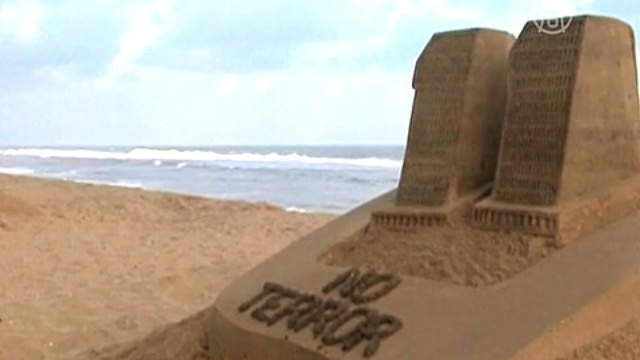 Индия: скульптура из песка в память о жертвах теракта 11/09