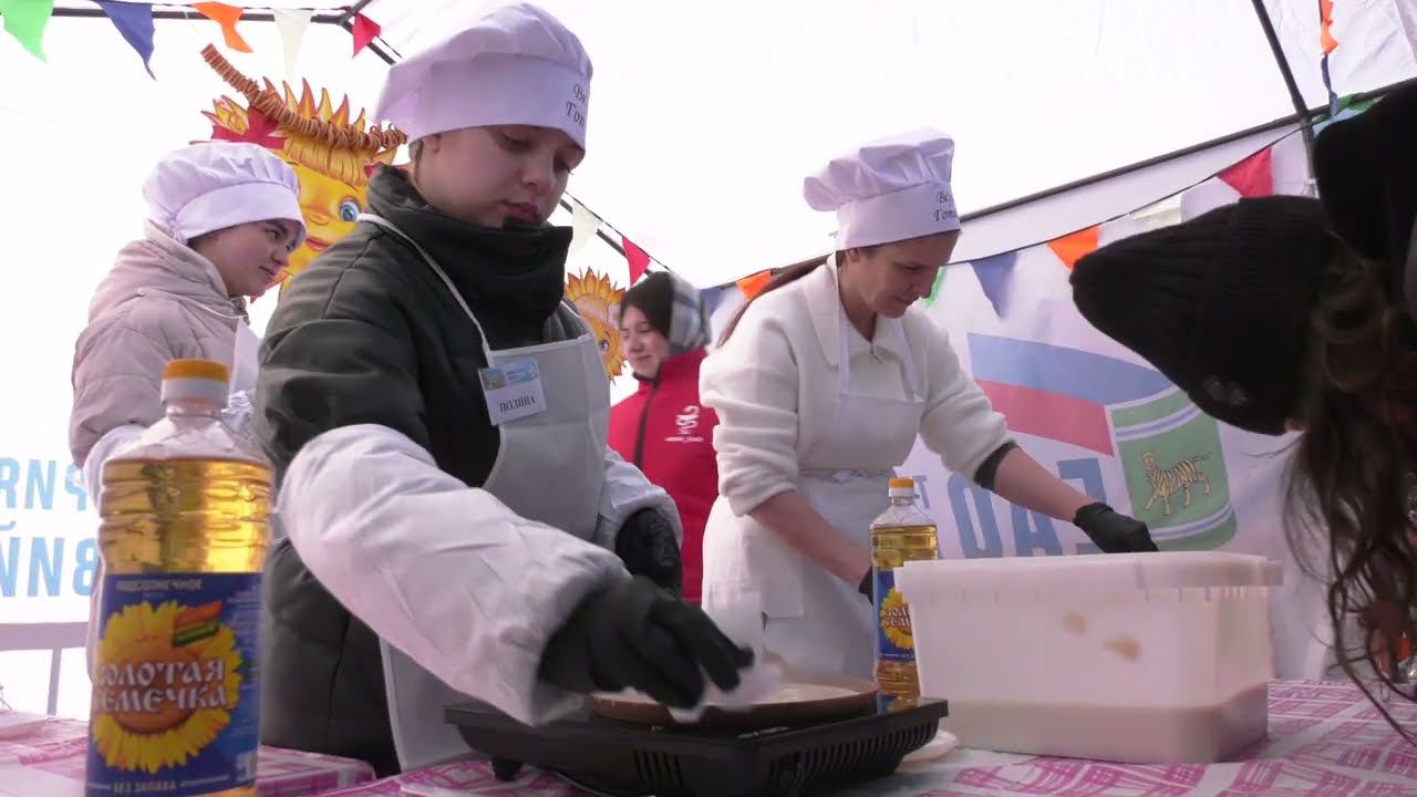 5000 блинов испекли на площади Ленина во время празднования Масленицы в Биробиджане