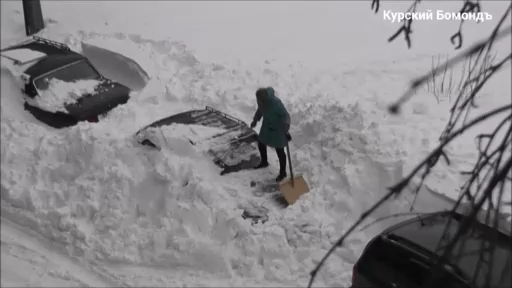 Курск. Женщина с лопатой откапывает свою машину из под снега. #снег #непогода #лопата #женщина #курск