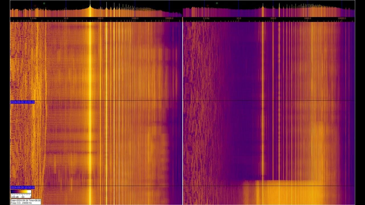 The left and right signals are taken from inductive sensors with ferromagnetic elements, but the left one is additionally connected to grounding on 2 stainless steel pins buried 1 m and spaced 1 m apart. You can see a large number of harmonics from the power supply and various artificial signals. Of interest are signals at frequencies below 50 Hz, where you can observe the operation of specialized equipment and communication signals of submarines and underground objects. Separately, it is worth considering signals in the region of 1-3 Hz on the left spectrum, which relate to the geomagnetic background, which is modulated by solar activity, They can be viewed in more detail in the video called “Signals from the Earth,” which are in the playlists below. The sound in the video is recorded in real time - a signal from sensors. О ПРОИСХОЖДЕНИИ ЧАСТОТНОЙ МОДУЛЯЦИИ СЕРПЕНТИННОЙ ЭМИССИИ https://youtu.be/bwWHggY1IVU?si=xAX1diRKI9MxQJ88&t=1740 Previous monitoring is in playlists: EMF monitor https://youtube.com/playlist?list=PLiRg2YCbXcwn41BHqADKVBep_TgVq6XUN Очень Низкая Частота ~ Very Low Frequency https://youtube.com/playlist?list=PLiRg2YCbXcwnp5DxM4PnSs7k_Rnypaqek SIGNALS IN THE GROUND https://youtube.com/playlist?list=PLiRg2YCbXcwl6f3Bf5arHbGSOCNE5U71O поддержать канал: 8-999-654-93-44