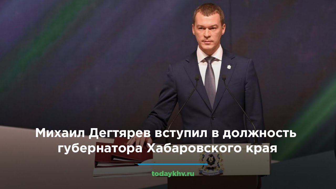https://todaykhv.ru/news/policy/42532/ В пятницу, 24 сентября, в большом зале Краевого музыкального театра (бывший театр музкомедии) состоялась церемония вступления в должность нового губернатора Хабаровского края. Как передаёт корреспондент ИА «Хабаровский край сегодня» с места событий, убедительно победивший на выборах в конце прошлой недели Михаил Дегтярев получил соответствующие удостоверение. Перед этим Михаил Дегтярев принёс присягу жителям Хабаровского края: - Я, Дегтярев Михаил Владимирович, клянусь при осуществлении полномочий губернатора Хабаровского края уважать и охранять права и свободы человека и гражданина, защищать интересы жителей, соблюдать Конституцию, федеральные законы, устав Хабаровского края и законы Хабаровского края, - произнёс губернатор. Напомним, Михаил Дегтярев стал четвёртым с 1991 года всенародно избранным губернатором Хабаровского края. Как ранее сообщало агентство, он получил поддержку 56,77% пришедших на избирательные участки. Таким образом, проработавший уже больше года после назначения на должность Президентом России врио губернатора победил в первом туре.