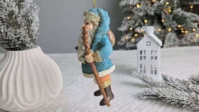 Ёлочная игрушка ДЕД МОРОЗ - ПУТЕШЕСТВЕННИК, полистоун, голубой, 13 см, E1092-1