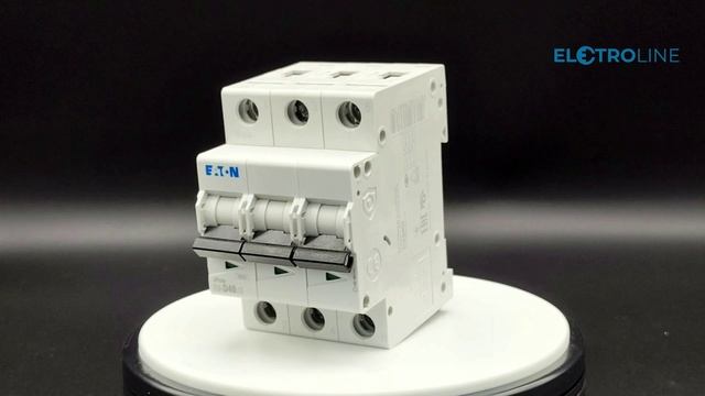 Модульный автоматический выключатель производства Eaton. Номинальный ток 40 А, кривая отключения "D". Состоит из 3 полюсов, с отключающей способностью 6 кА. Крепление на Дин-рейку. Узнать подробнее вы можете на странице товара в нашем интернет магазине по ссылке: https://electroline.ru/product/pl6-d403-avtomaticheskiy-vyklyuchatel-40a-krivaya-otklyucheniya-d-3-polyusa-otkl-sposobnost-6-ka.html