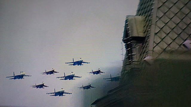 Самолёты летят над Красной площадью во время Парада Победы в Москве