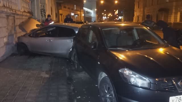ДТП на Светланской - Демио, стена и Кашкай.