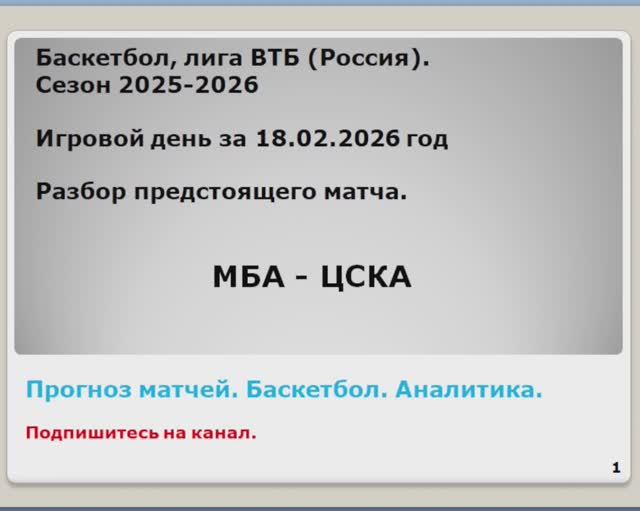 Прогноз матча МБА - ЦСКА. 18.02.2025. Баскетбол.