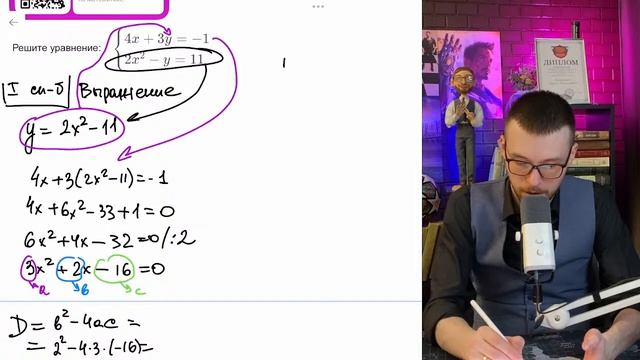 Решите систему уравнений: 4х+3у = -1, 2х2 - у = 11 - №15725