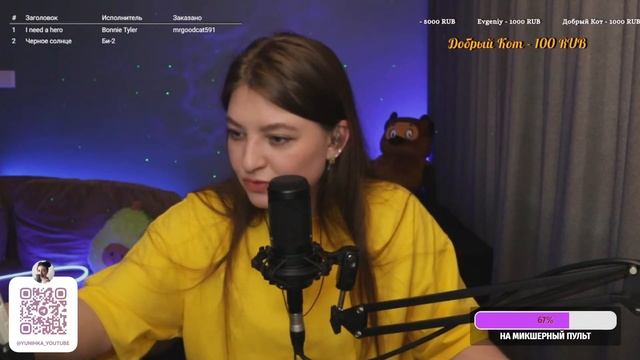 Привет, дорогой зритель! Меня зовут Юля, и я очень рада тебя видеть здесь на моем канале) Сегодня я провожу прямую трансляцию и поэтому прошу Тебя поддержать меня ну и конечно же петь песни вместе со мной Ссылка на донат ИЛИ если вы хотите увидеть свое сообщение на экране - https://www.donationalerts.com/r/yunihka Если просто хотите поддержать мое творчество номер карты СБЕР: 4276550062989176 Заказ песни вне очереди 100 р. ЧТО Я МОГУ СПЕТЬ ДЛЯ ТЕБЯ смотри тут https://disk.yandex.ru/i/YTq-QLQ9VLuGvA https://www.streamersonglist.com/t/yliannohka/songs Вы так же можете получить сигну написав в чат "ХОЧУ СИГНУ" и забирать ее в телеграмме Так же сигна делается автоматически всем, кто отправил донат Хочу сказать огромное СПАСИБО всем донатерам и просто случайным зрителям! Я надеюсь Вам все понравится ❤️ ИЩИТЕ МЕНЯ ЗДЕСЬ: инстаграм (запрещен в РФ): https://www.instagram.com/yunihka/ (@yunihka) вк: https://vk.com/yunihka Телеграмм: https://t.me/yunihka_youtube #стрим#караоке#разговоры#живойзвук#вокал#живойвокал#поем#петь#музыка#поемкараоке#петькараоке#cover#music#стрим#прямойэфир#караоке