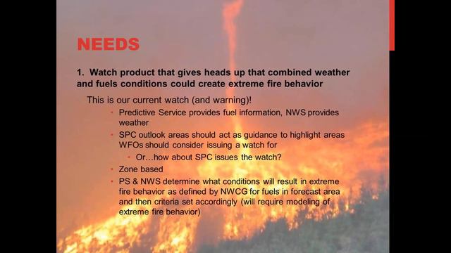 An overview of the Red Flag Warning and how the criteria was initially developed. There is a new analysis being evaluated this provides an overview of the ongoing efforts to update the criteria.
