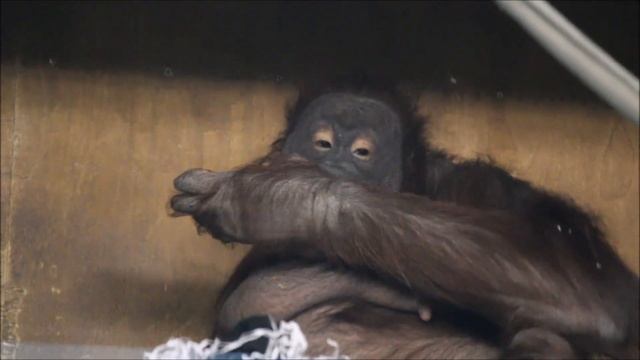 Орангутаны. Мишель покушала тыкву и спустилась с дочкой вниз 27.11.2025