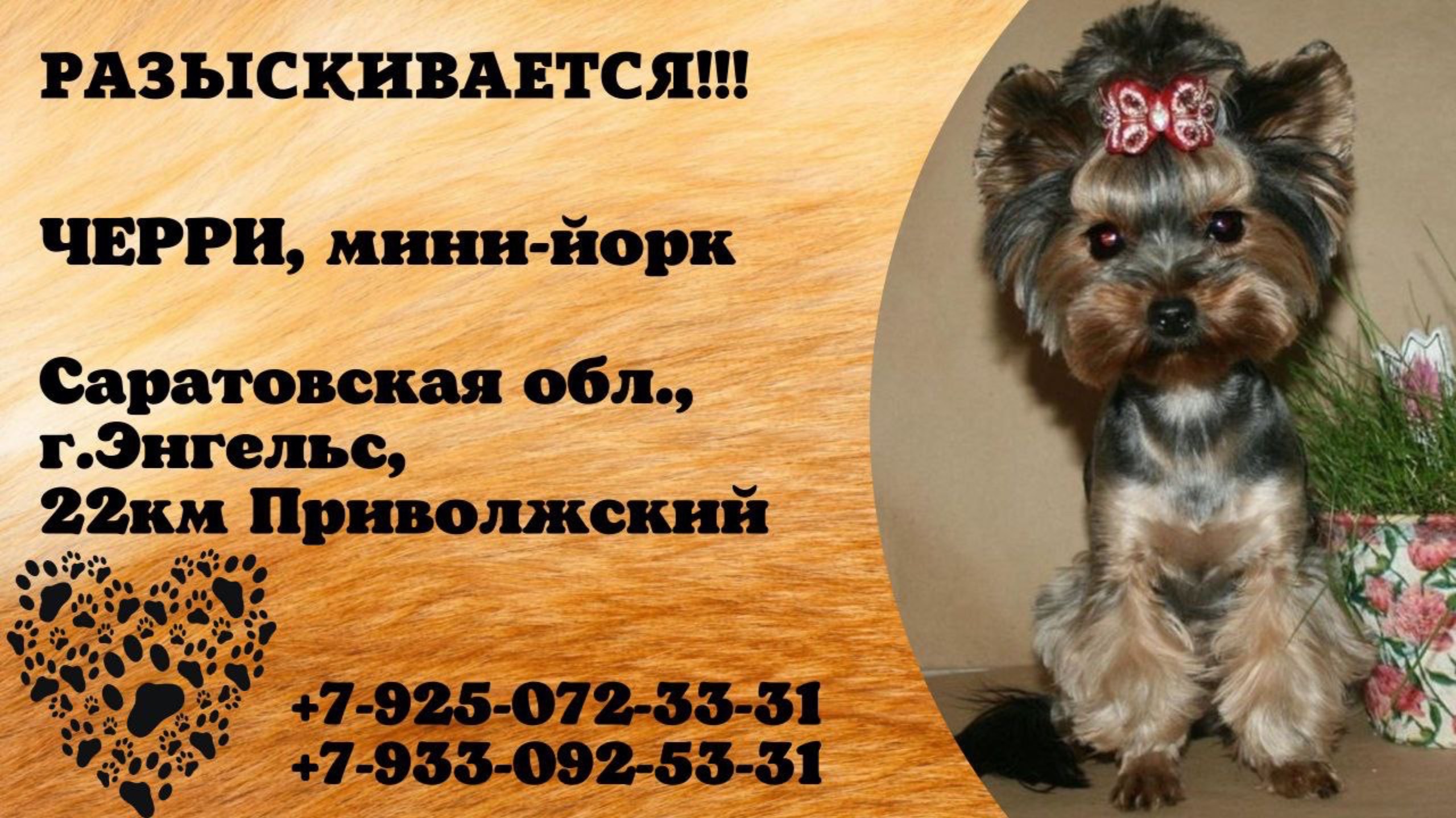 Пропала собака! ЧЕРРИ, мини-йорк. Саратовская обл.,