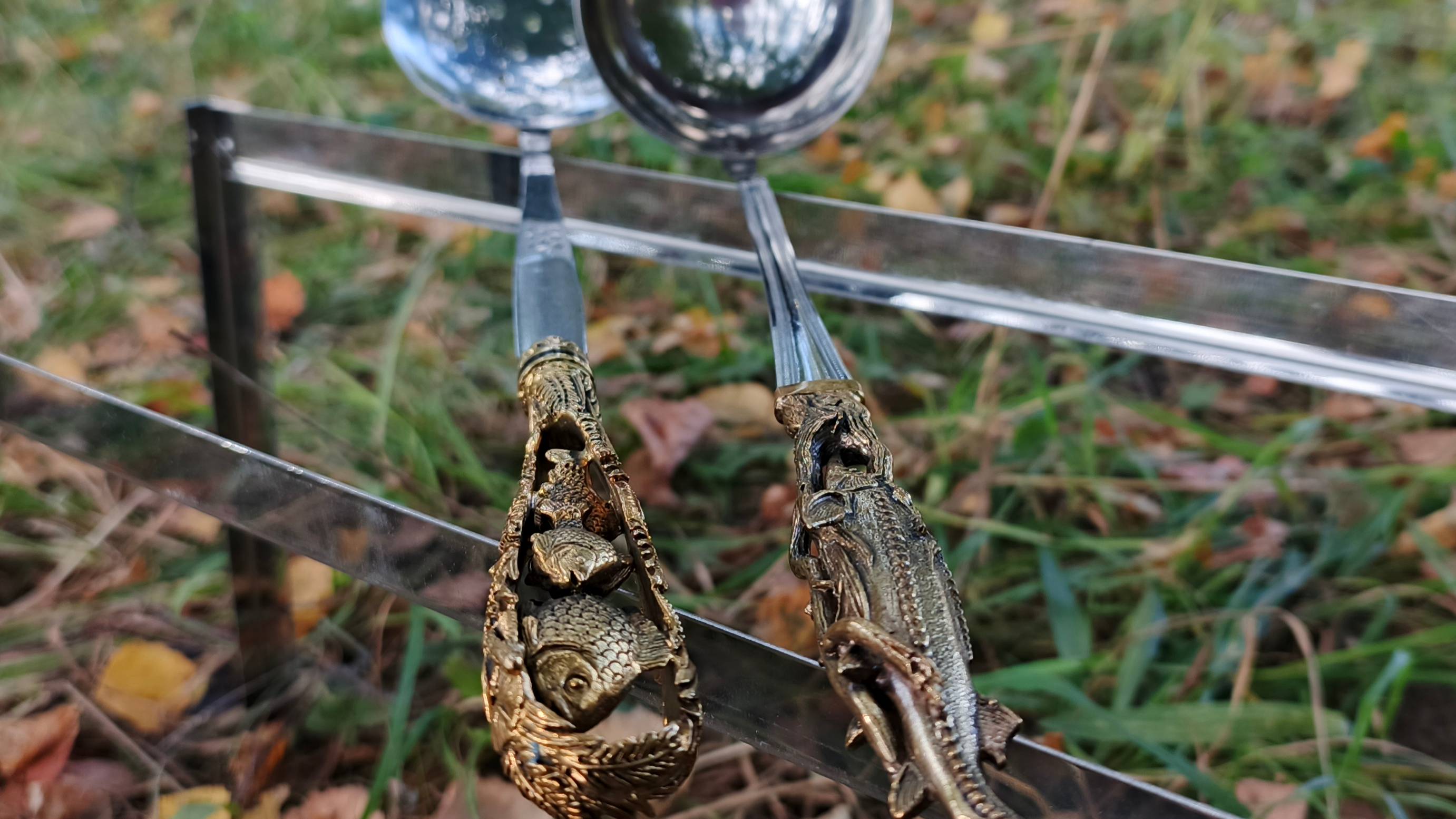 Набор рыбацкий «Осётр» для ухи на природе из 2шт.,бронзовый половник «Осётр», шумовка «Карась»
