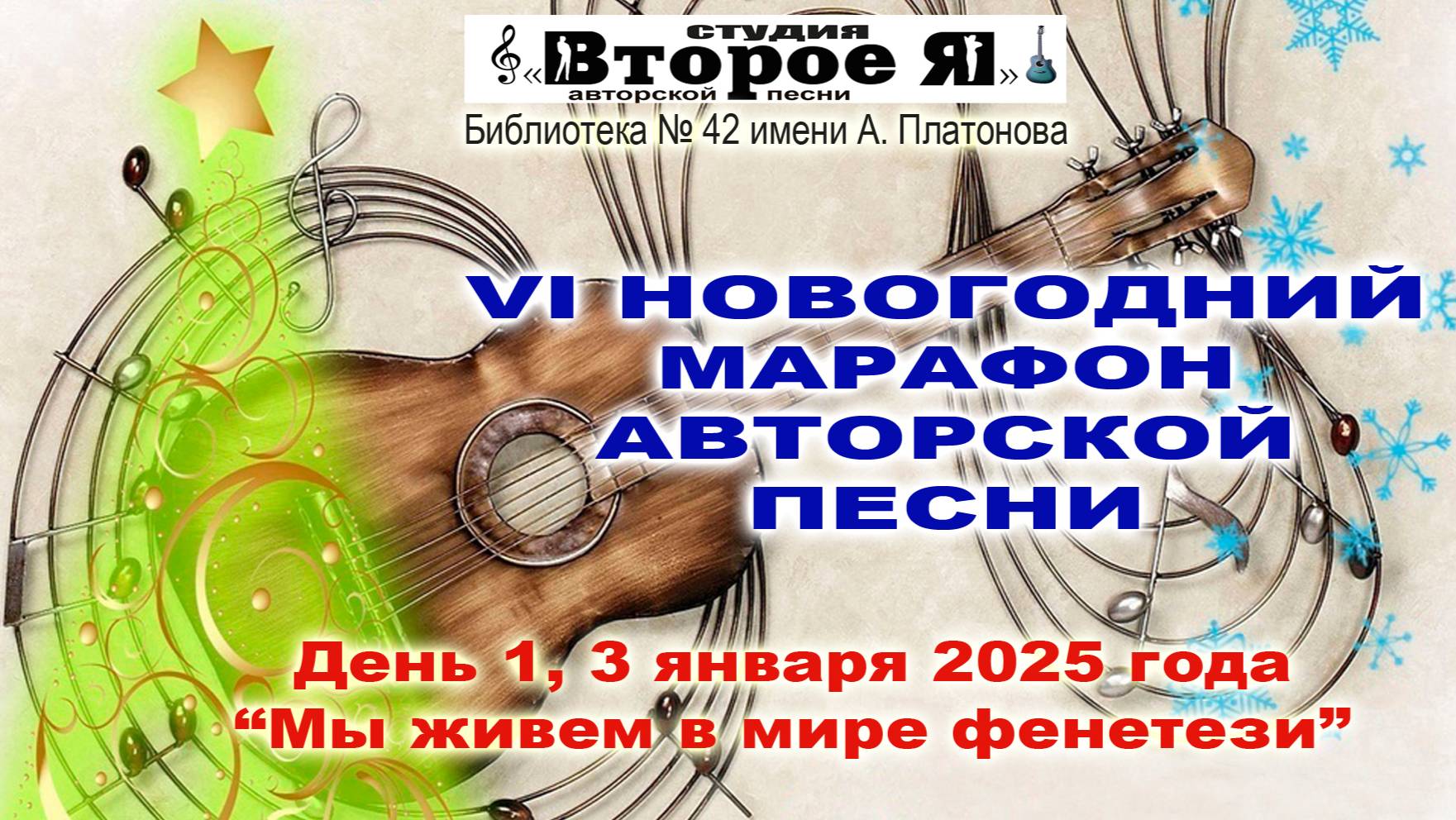 Участники: Юрий Грузинов, Александр Галаганов, Андрей Богомолов, Ирина Озеркова, Андрей Широглазов, Максим Леви, ВИП Элина и Владимир Гочуа, Алексей Куценко, Вероника Захарова. Продолжительность – 3 часа 48 минут. Библиотека № 42 имени А. Платонова: Москва, улица Усиевича, дом 16 (метро «Сокол»). 3 января 2025 года.