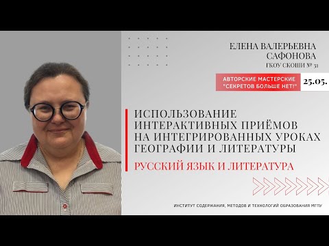 Ведущая: Сафонова Елена Валерьевна, учитель русского языка и литературы ГКОУ СКОШИ № 31 Тема: "Использование интерактивных приёмов на интегрированных уроках географии и литературы"