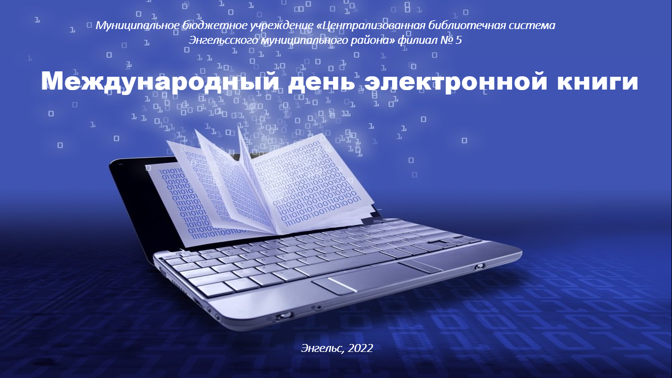 Ежегодно в сентябре отмечают Международный день электронной книги. Впервые праздник провели в 2014 году, чтобы привлечь внимание читателей к электронному книгоизданию. Мир разделился на два лагеря – где одни принципиально не берут в руки электронную книгу, а другие без проблем отказываются от традиционных бумажных изданий. Пусть каждый останется при своем мнении ведь и у электронной, и у бумажной книги есть свои преимущества. Сотрудники библиотеки-филиала № 5 подготовили видеопрезентацию «Международный день электронной книги», в которой рассказывается о возможности данного продукта.