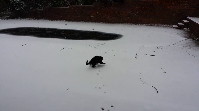 Кошечка по имени Софи встретила свой первый снег.