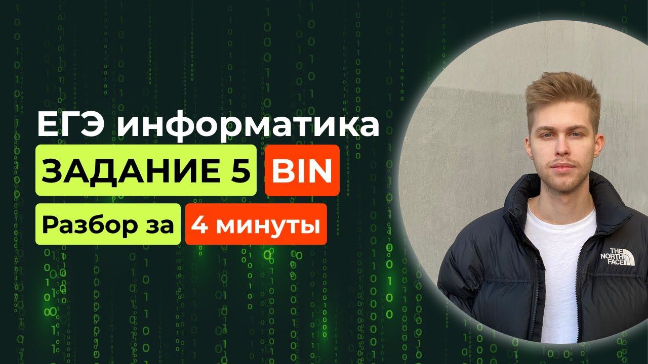 Готовься к ЕГЭ по информатике вместе со мной! Ссылка на курсы: ⭐️ 1 - 27 задания (полный курс): https://stepik.org/a/198513 ⭐️ 24 - 27 задания: https://stepik.org/a/198543 1. 1 - 23 задания: https://stepik.org/a/182421 2. 24 задание (строки): https://stepik.org/a/186616 3. 25 задание (теория чисел): https://stepik.org/a/186617 4. 26 задание: https://stepik.org/a/186618 5. 27 задание: https://stepik.org/a/189442 *** Бесплатный тренажёр: https://stepik.org/180838 Курс по python: https://stepik.org/174852 *** Рекомендую подписаться на открытый канал. В нем обсуждаем сдачу ЕГЭ, поступление в вузы, а также там я в первую очередь делаю все анонсы: https://t.me/analitiqtutor *** Прокачивай себя вместе со мной! Записаться на занятия можно здесь: Написать в Telegram: https://t.me/analitiqq Написать в ВК: https://vk.com/analitiqvk *** Подписывайся также на мои другие социальные сети: Дзен: https://dzen.ru/analitiqtutor Teletype: https://teletype.in/@analitiqtutor *** Теги: #егэ #информатика #егэ2025 *** Новый разбор задания 5 ЕГЭ по информатике 2025. Задание посвящено двоичным преобразованиям. Речь идет про перевод десятичного числа в двоичную систему счисления и выполнения операций над ним в этой системе счисления. Также в этом задании начали появляться другие виды преобразований, например троичные.