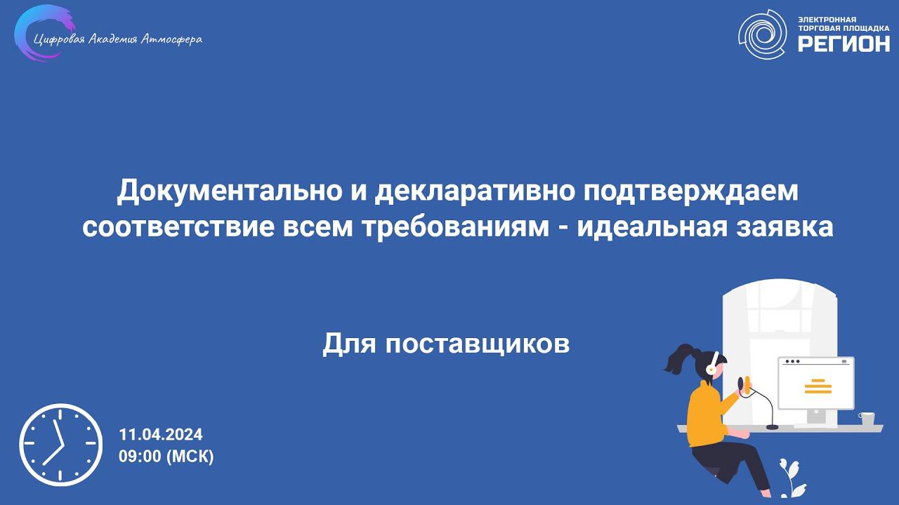 Подписывайтесь на нас в социальных сетях, чтобы не пропустить свежие новости: https://academy-atmosphere.ru/zakupki https://t.me/academy_atmosfera https://vk.com/academy_atmosfera https://rutube.ru/channel/24606397/ 00:00 Вступление 00:19 Приветствие спикера Сафина Светлана Дамировна 00:52 Заявка на участие: требования к содержанию 1:56 Заявка на участие 05:09 Требования к участникам закупок 8:45 Заявка на участие 16:18 Возврат заявки оператором 22:40 Основания для отклонения заявки (конкурс) 24:42 Декларируемые требования 25:41 Как проверяются иные единые требования? 26:40 Декларируемые требования 36:48 Соответствие требованиям 39:28 Соответствие УЗ единым требованиям 40:46 Содержание заявки: подтверждаем… 45:13 Предоставление информации из реестра лицензий 46:23 Требования к УЗ. Лицензирование 53:45 Дополнительные требования 54:36 Ошибки при указании доп. требований 54:53 Доп.требования по ПП РФ № 2571 56:17 Факультативные требования. РНП 58:34 Анализ участником извещения о закупке на предмет необоснованных требований 59:48 Запрос на разъяснение и жалоба ФАС Способы защиты прав поставщика в случае предъявления необоснованных требований. 1:01:54 Действия участника в этой ситуации