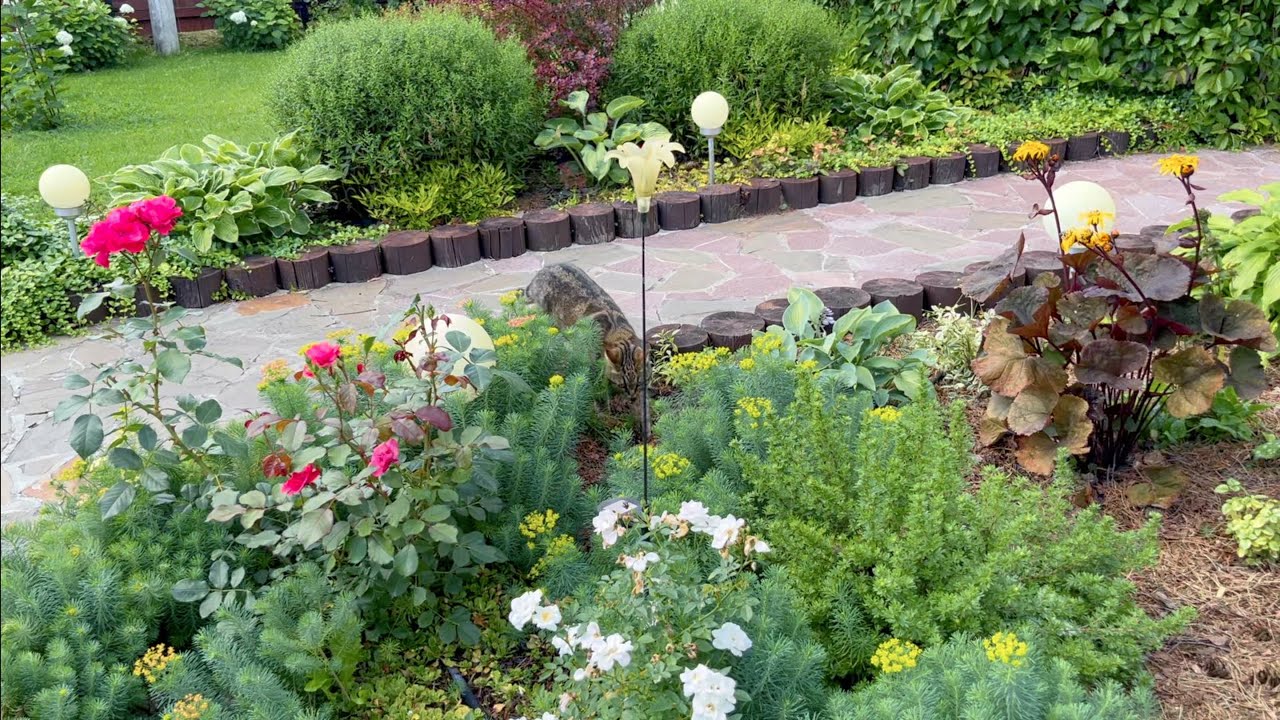 САД В АВГУСТЕ. РЕЗУЛЬТАТ ПЕРЕДЕЛКИ МНОГОЛЕТНЕЙ КЛУМБЫ. ГОРТЕНЗИИ /ДАРМЕРА / МОНАРДА / МУЛЬЧИРОВАНИЕ.